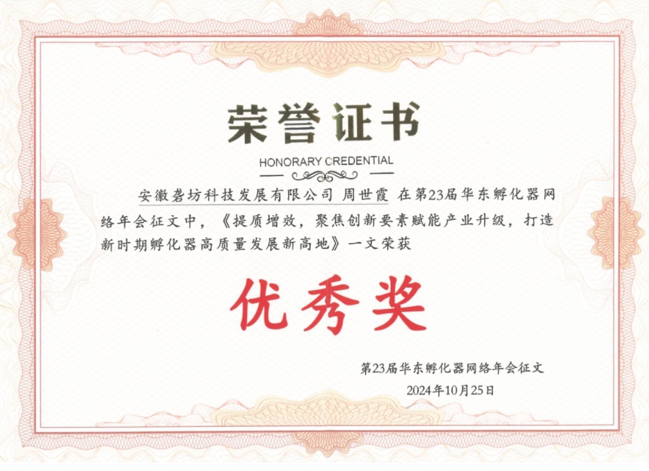 這是園區(qū)第二次獲此殊榮,作為安徽省唯一獲得優(yōu)秀的孵化器,這是協(xié)會對園區(qū)孵化工作的肯定,下一步,園區(qū)將繼續(xù)優(yōu)化孵化服務(wù)體系,深入聚焦創(chuàng)新資源,培育新質(zhì)生產(chǎn)力,為推動區(qū)域創(chuàng)新生態(tài)和科技企業(yè)高質(zhì)量發(fā)展貢獻(xiàn)力量。