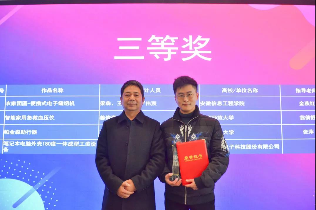 大會(huì)伊始,市經(jīng)信局徐總工程師為大賽頒獎(jiǎng)儀式致辭,他強(qiáng)調(diào),蕪湖市將建設(shè)省域副中心城市,未來,在長三角一體化的國家戰(zhàn)略帶領(lǐng)下,蕪湖“經(jīng)濟(jì)發(fā)展”“科技創(chuàng)新”“交流服務(wù)”與“生態(tài)支撐”等方面將全面發(fā)展,應(yīng)當(dāng)大力弘揚(yáng)企業(yè)家精神、創(chuàng)業(yè)創(chuàng)新精神和工匠精神,加快工業(yè)設(shè)計(jì)成果轉(zhuǎn)化,希望廣大高校、企業(yè)專注設(shè)計(jì),不斷推出個(gè)性化、定制化、特色化的產(chǎn)品和作品。